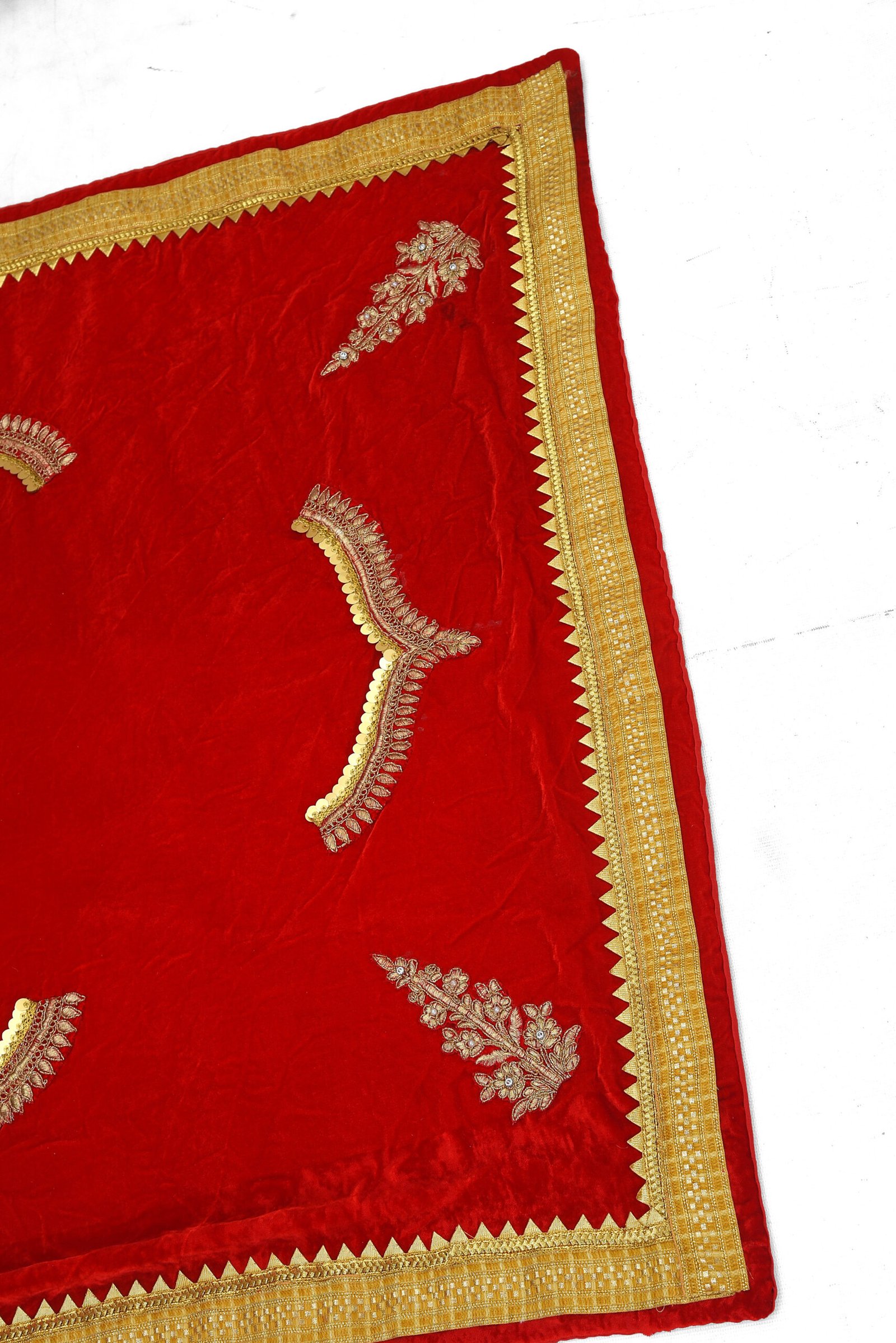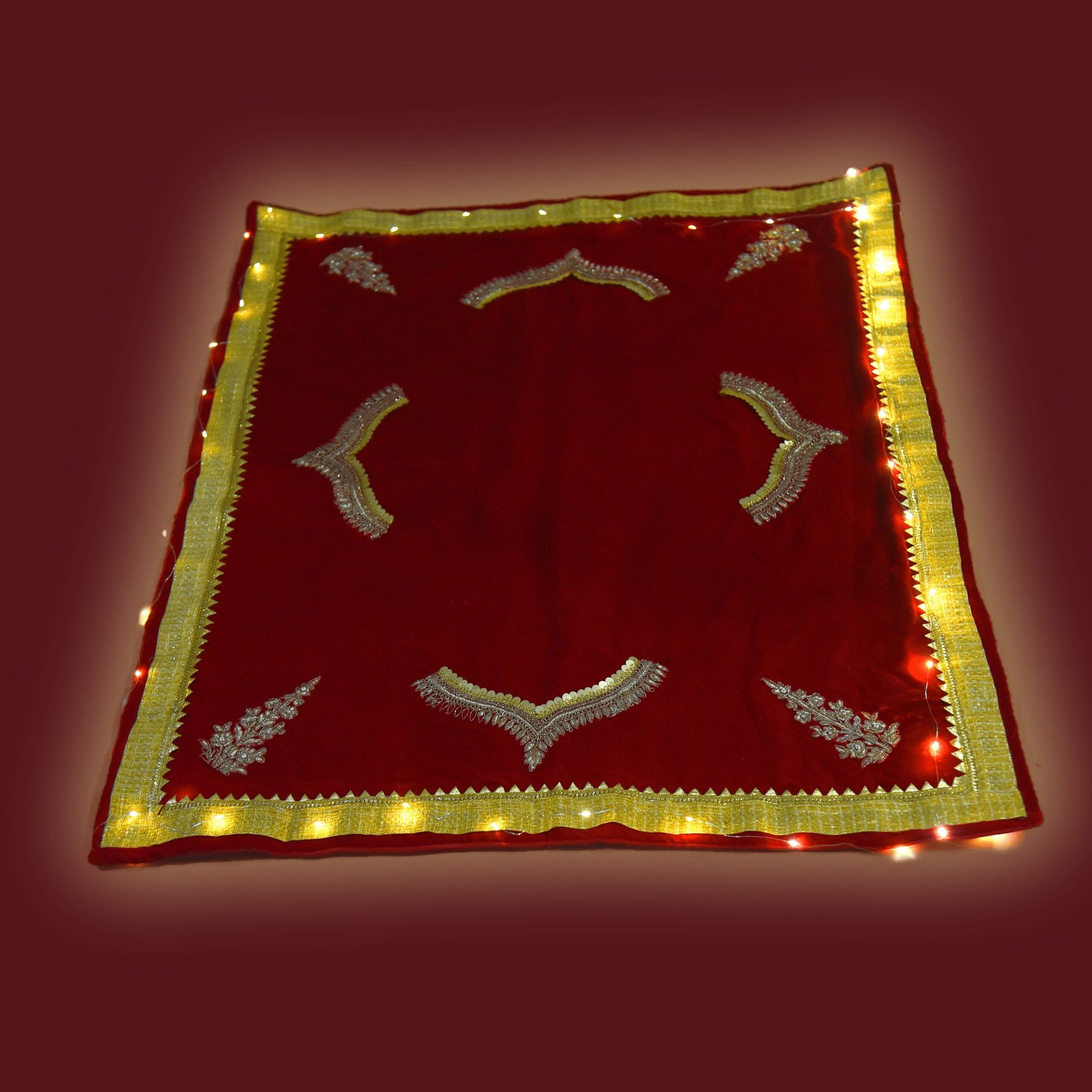 The Jajarman Chandarvo is a sacred ceremonial fabric symbolizing blessings, protection and prosperity in Gujarati weddings and rituals. Traditionally used during Vidhi ceremonies, this handcrafted canopy features intricate detailing, traditional motifs and premium fabrics, blending rich cultural heritage with modern artistry. Perfect for weddings, temple rituals or cultural events, the Chandarvo adds authenticity, grace and spiritual significance to every occasion, serving as both a ritual essential and a decorative masterpiece that honors timeless traditions.